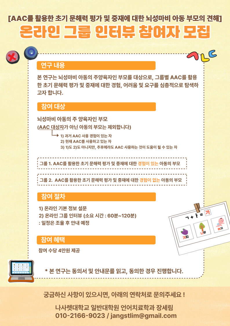 AAC를 활용한 초기 문해력 평가(온라은그룹인터뷰참여자모집)
